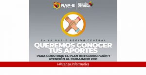 Habitantes de la Región Central pueden participar en la formulación del plan anticorrupción y atención al ciudadano de la RAP-E